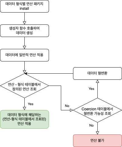 지금까지의 내용을 종합하면, 다중표현 데이터에 일반적 연산을 적용하는 과정을 다음과 같은 플로우차트로 나타낼 수 있다.