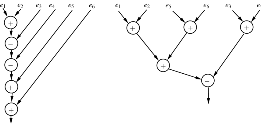 이 평가 과정은 tree 형태로 시각화 할 수 있는 트리 누산(tree accumulation)으로 볼 수 있다.